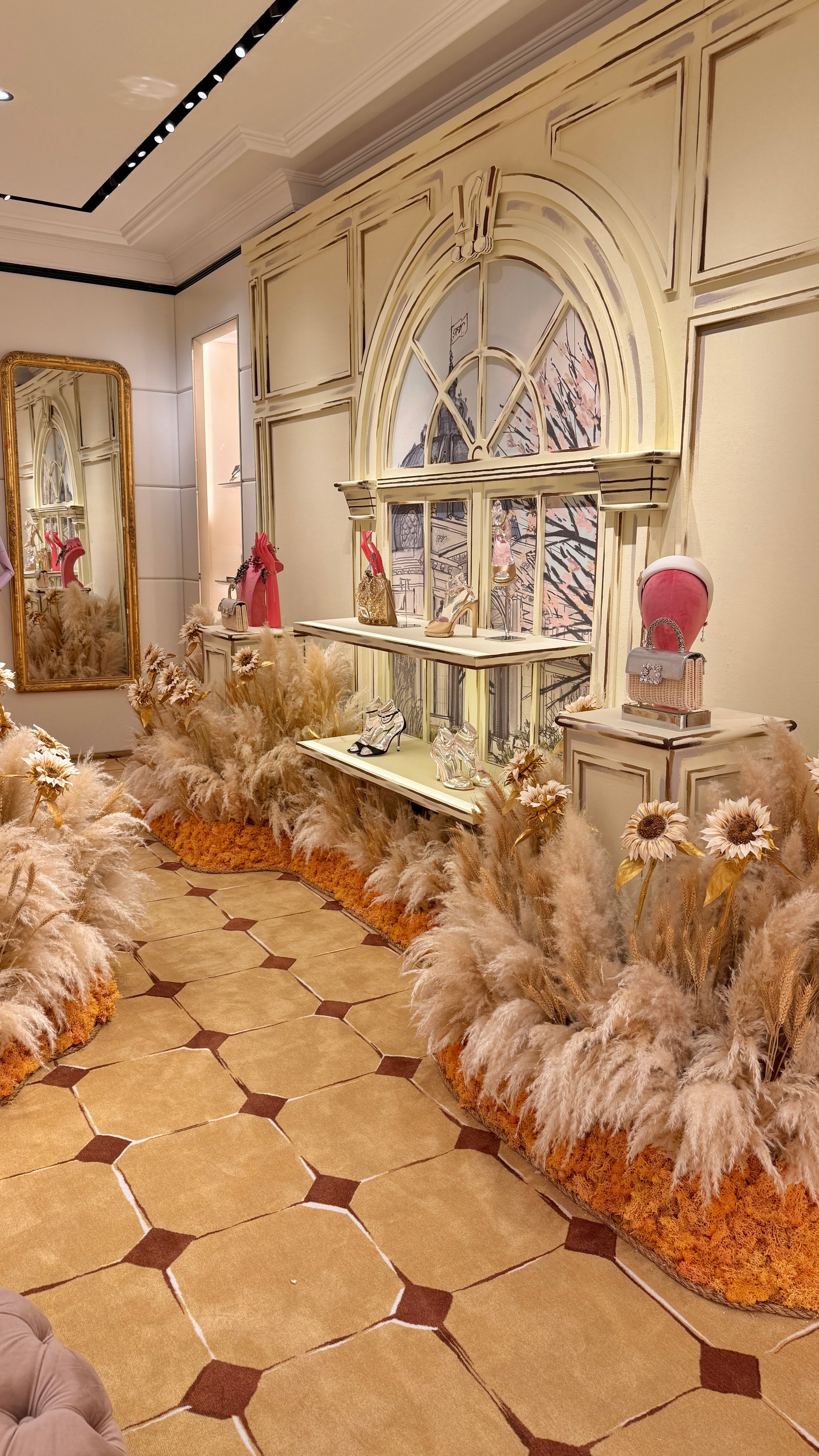 A summer-inspired retail floral installation for Roger Vivier, featuring pampas grass and sunflower accents. Designed to enhance the window display and in-store environment, this brand activation elevates seasonal storytelling and visual merchandising within the luxury retail space.