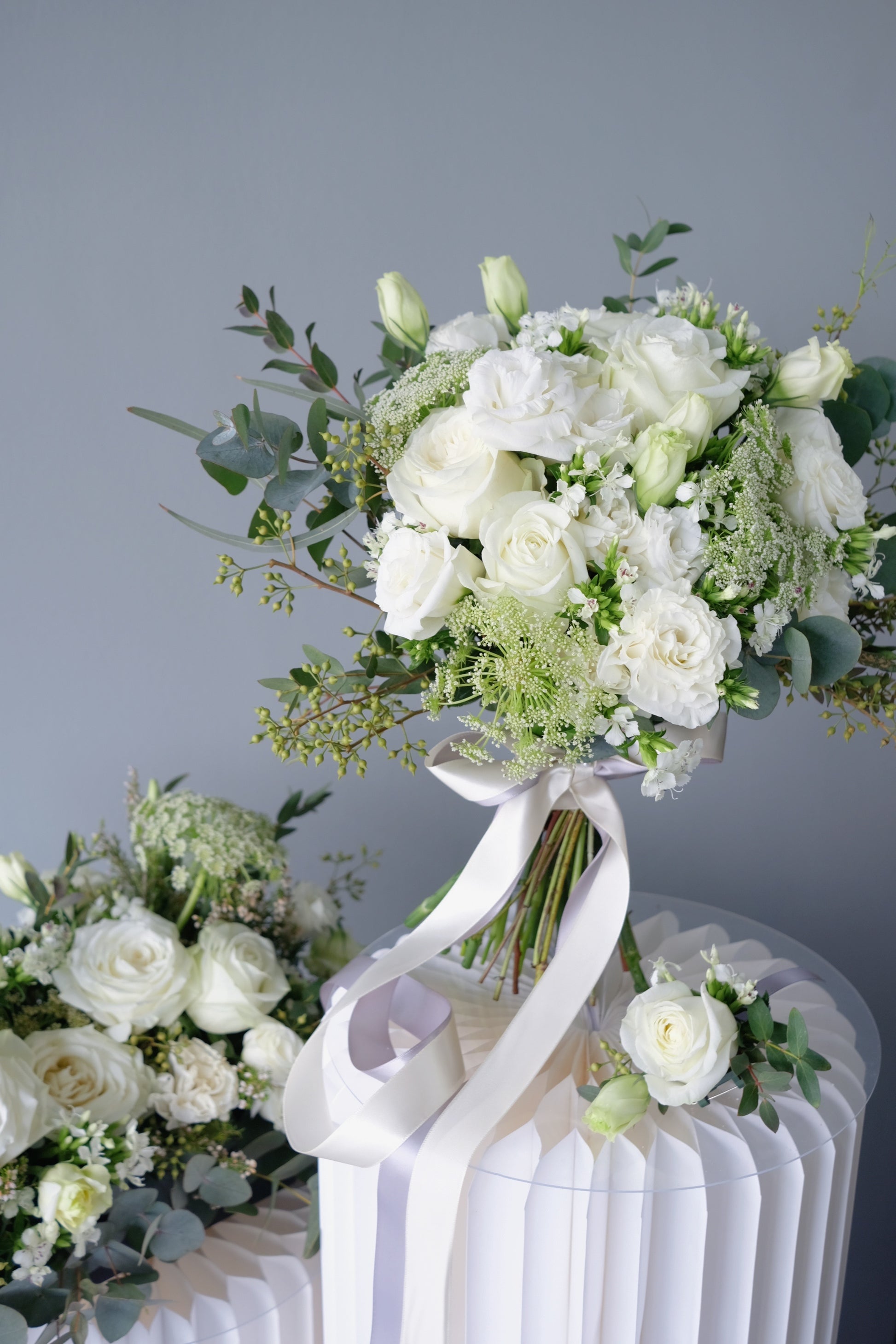 White flower bridal bouquets is timeless and complement any wedding dress, they go with nearly any colour scheme and will fit in with your celebration's style.
