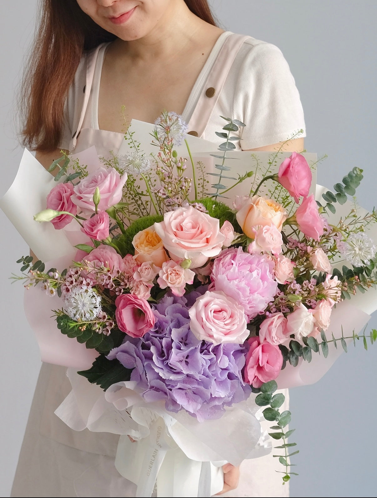Celebrate the boundless love and devotion of a mother with our Seasonal Special featuring exquisite peonies. This enchanting bouquet showcases the finest seasonal peonies, lush hydrangeas, and delicate accent blooms, thoughtfully handpicked to express heartfelt gratitude and affection. Available exclusively from May to June, this limited-edition arrangement captures the true essence of devotion and beauty.